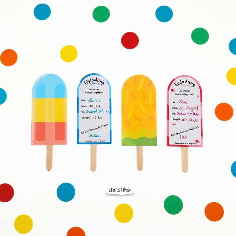 Diese Einladung ist einfach zum Dahinschmelzen! Wer freut sich nicht über ein Eis und vor allem, wenn es zur Party einlädt? Mit dieser kreativen Bastelidee kannst du im Handumdrehen eine originelle Eis-Einladung gestalten, die garantiert für große Augen bei kleinen Gästen sorgt.