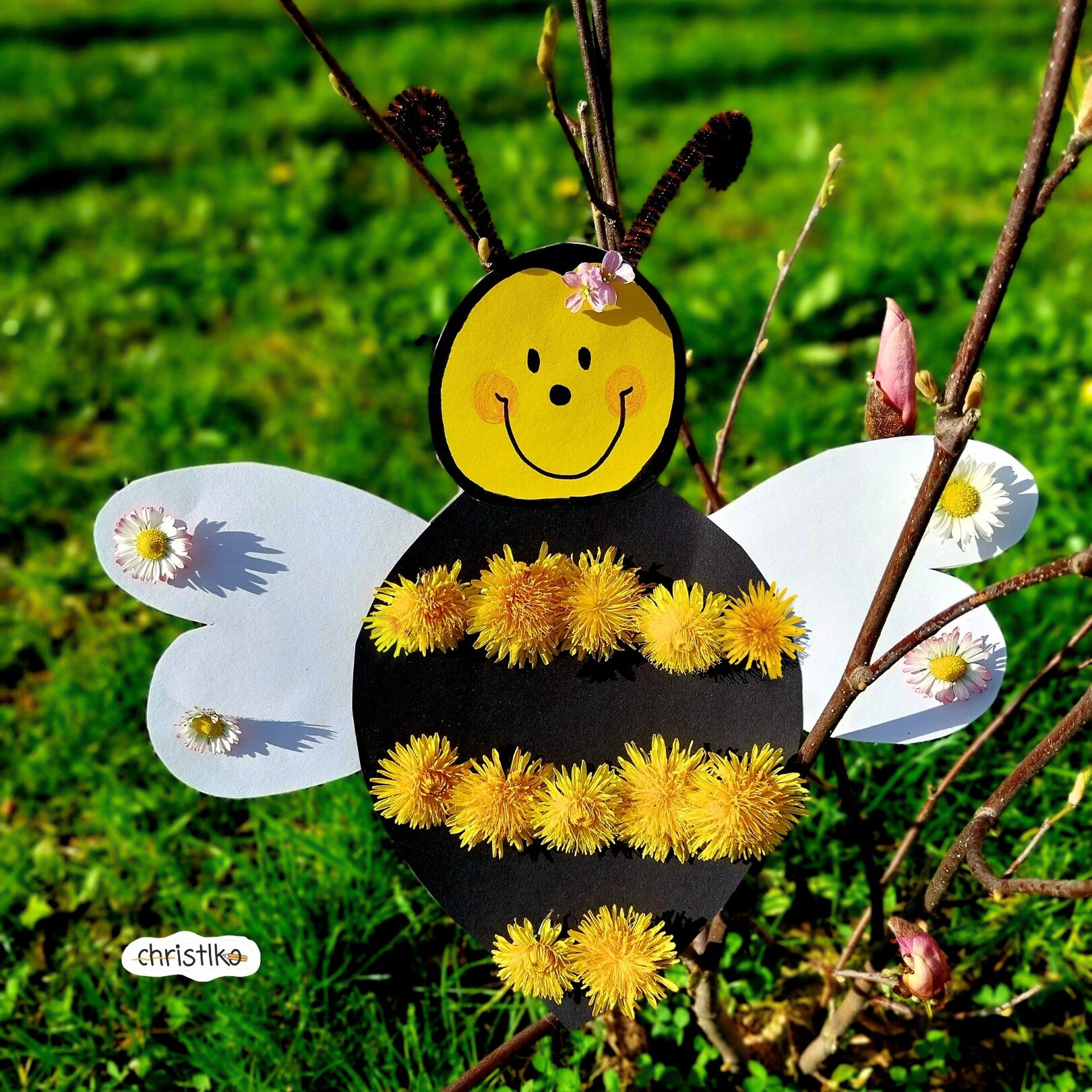 Mit dieser Vorlage entsteht im Handumdrehen eine kreative Löwenzahnbiene für draußen 🌼🐝